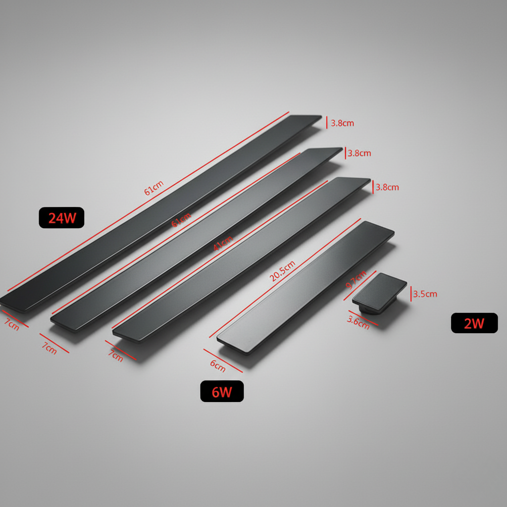 - Sizes: 2W - 5.4 cm x 9.7 cm x 3.5 cm; 6W - 7 cm x 20.5 cm x 3.8 cm; 18W - 7 cm x 41 cm x 3.8 cm; 24W - 7 cm x 61 cm x 3.8 cm